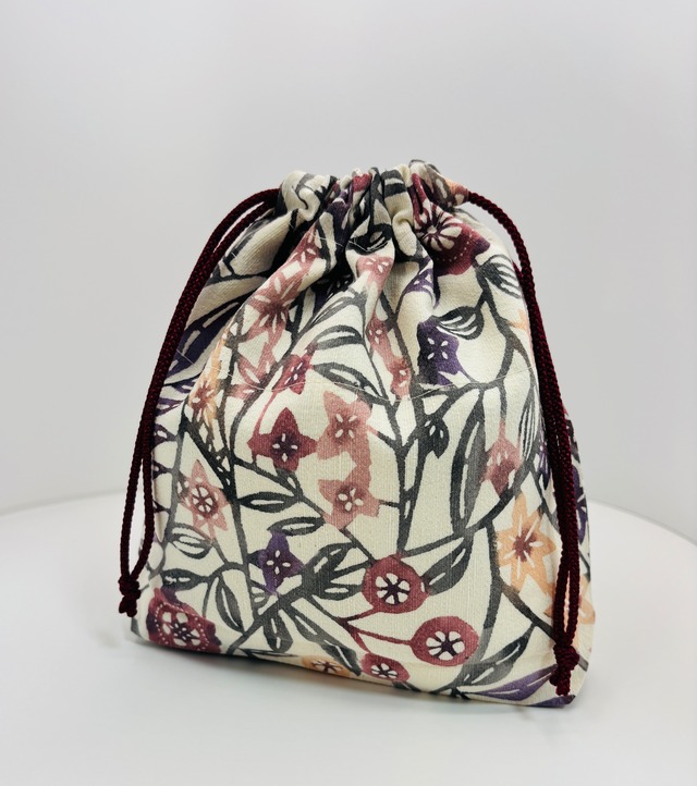 【 手挿し江戸紅型染 巾着 】 手挿し江戸紅型染めを施した、結城紬の巾着です。鮮やかな更紗調の柄が印象的で、日常のさまざまなシーンでお楽しみいただけるアイテムとなっています。ひだのないデザインは、洗練されたシンプルさを演出し、コンパクトに持ち運ぶことが可能です。この巾着が、あなたのライフスタイルに素晴らしい彩りを加えてくれることでしょう! 職人の手で丁寧に仕上げられたこの巾着は、小物をしっかりと収納でき、持ち運びも快適です。普段使いはもちろん、贈り物や手土産にも最適で、特別な瞬間を華やかに演出するアクセントとなります。あなたはこの巾着に何を入れて、どんなスタイルを楽しむのでしょうか?心躍るアイテムとして、日々の生活にさらなる魅力をプラスします。 伝統的な染め技術が生かされたこの巾着は、鮮やかな色合いの更紗調の柄が日常を楽しく彩り、心温まるひとときを演出します。新たな発見と共に、あなたの生活に華やかさをもたらしてくれるアイテムです。 ================================== 【サイズ】 幅 23 × 高さ 23 × マチ 4 (cm) *平置き採寸で おおよそのサイズです。 【素材】 表地 結城紬 裏地 絹紅梅 ▼ お洗濯について▼ 洗濯ネットに入れて手洗いコースで洗濯してください。 洗い終わったら 直ぐに干してください。 ▼ 送料 ▼ 3点以上まとめて(他の商品含め)お買い上げの場合 スマートレター(厚さ2㎝までなので…)は使えませんので、レターパックライト(厚さ3㎝まで) or レターパックプラスを選択してください。 わからない時はお問い合わせください。 ▼ 商品画像について▼ ※実際の商品と仕様、加工、サイズが若干異なる場合がございます。 ※パソコンなどの環境により、若干製品と画像のカラーが異なる場合もございます。