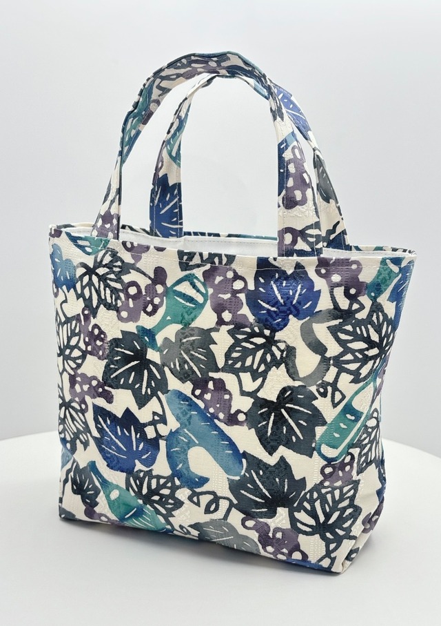【手挿し江戸紅型染 手提げバッグ】 手挿し江戸紅型染を施した、魅力いっぱいの手提げバッグが新登場です! 博多献上帯地を用い、さわやかな配色で表現された葡萄ワイン柄が特徴。このバッグは、持つことで周囲の視線を引きつける素敵なアイテムとなっています。 自立するデザインは、実用性が高く、しっかりとした作りでありながらも非常に軽やか。マチがあるため、収納力も抜群で、日常のお出かけやショッピング、特別な日のスタイルにも完璧にフィットします。この手提げバッグをぜひ、あなたのコーディネートに加えてみてはいかがでしょうか? 持つことで、あなたの個性と華やかさを引き立てること間違いなし。自分用にはもちろん、大切な人への贈り物にも最適です。毎日のコーディネートにさらなる楽しさをもたらしてくれるアイテムです! 送らせていただく時は 畳んで発送いたします。 ================================== 【サイズ】 幅 28 × 高さ 19(㎝) 持ち手 10(㎝) マチ 7.5 (cm) ※ 平置き採寸で おおよそのサイズです。 【素材】 本体 博多献上帯地 ▼ お洗濯について▼ 洗濯できません どうしても洗いたいときは 中性洗剤を薄めたものをタオルに含ませてバックにタオルを入れてから叩いてください。 その後に綺麗な水を含ませたタオルで叩いて乾燥してください。 ▼送料▼ レターパックプラスを選択してください。 折りたたまない発送をご希望の方、 日時指定をご希望の方は佐川急便を選択してください。 ▼ 商品画像について▼ ※実際の商品と仕様、加工、サイズが若干異なる場合がございます。 ※パソコンなどの環境により、若干製品と画像のカラーが異なる場合もございます。