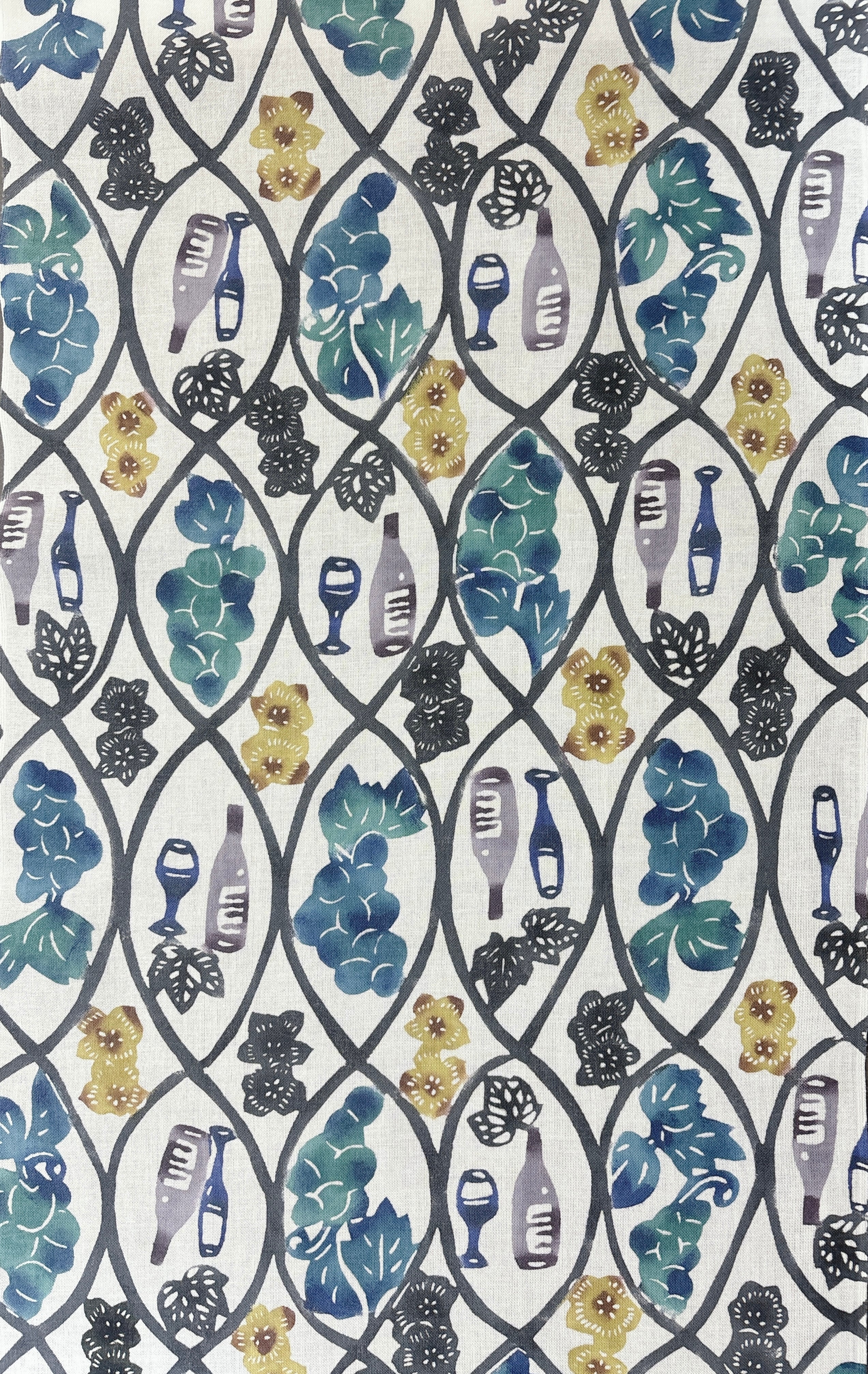 手挿し江戸紅型染めの技法で仕上げられた、葡萄ワイン柄の手拭いです!綿100%の素材を使用し、肌触りが柔らかく、心地よさが際立っています。鮮やかな配色が魅力的で、使うほどにその風合いが増していくのが特長です。