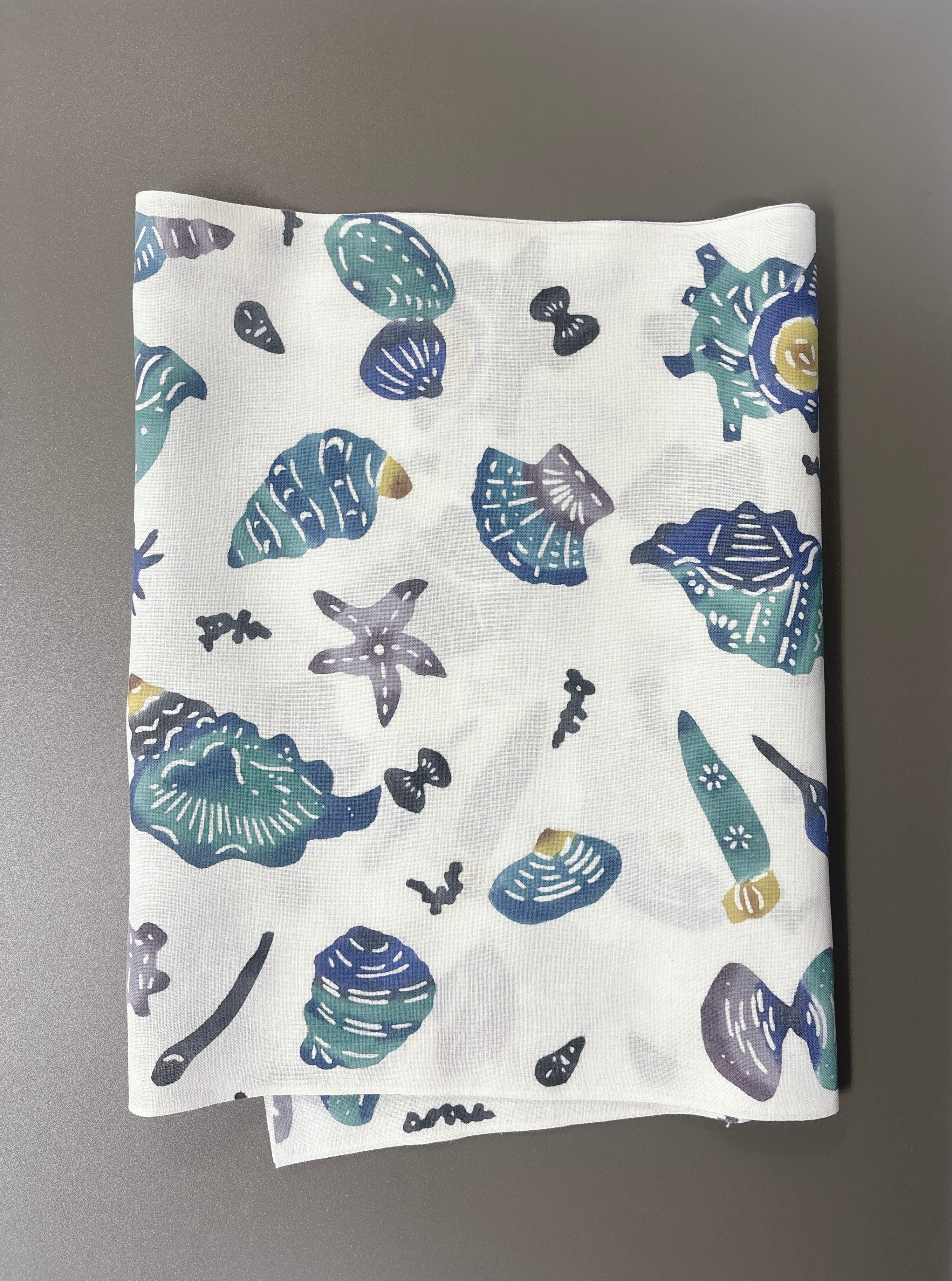 手挿し江戸紅型染めで丁寧に仕上げられた、貝殻の柄が美しい手拭いです!綿100%の素材を使用し、やわらかな肌触りが特徴で、日常使いが楽しみになるアイテムです。爽やかな配色が魅力で、使うほどにその風合いが増していくのが特長です。