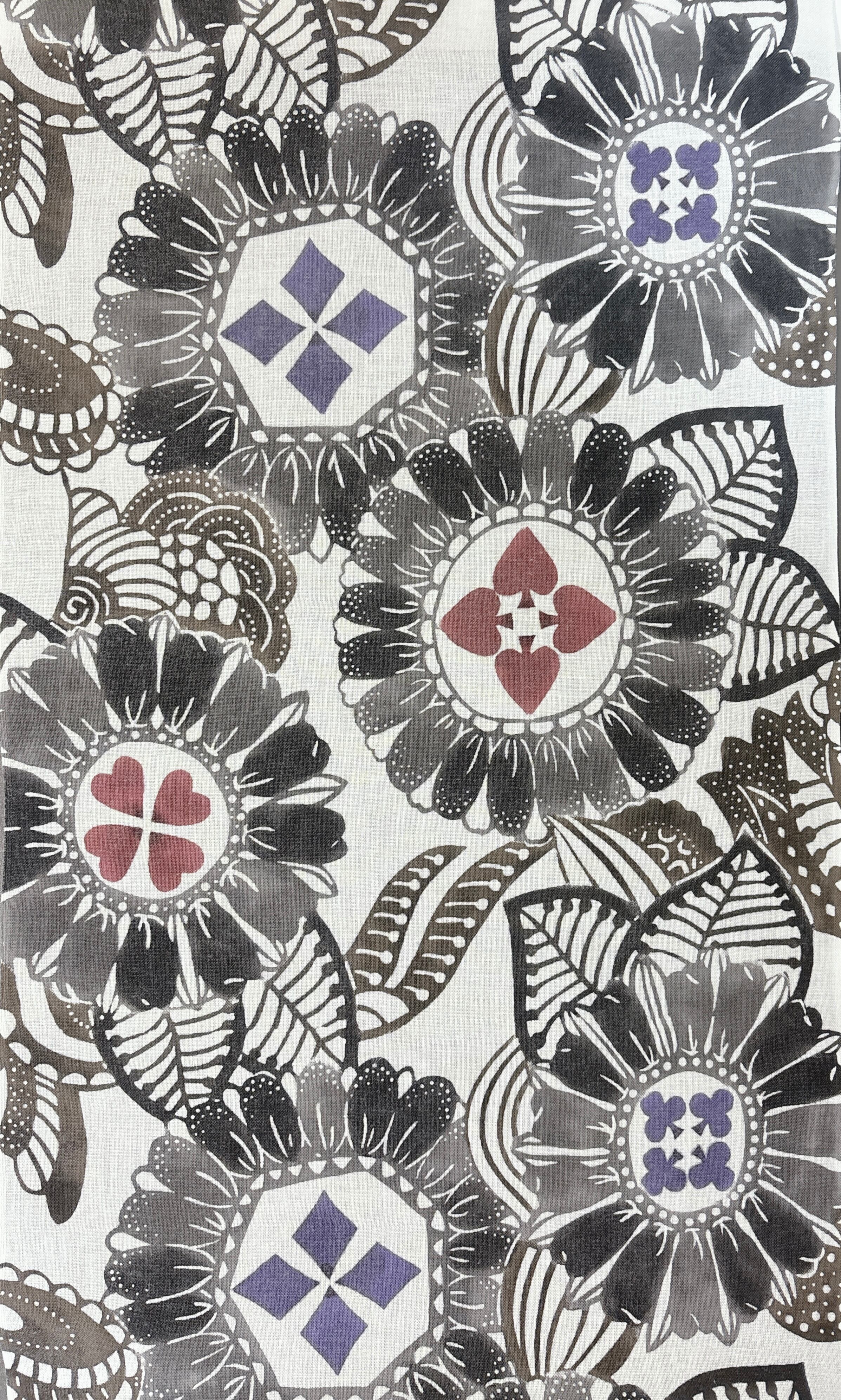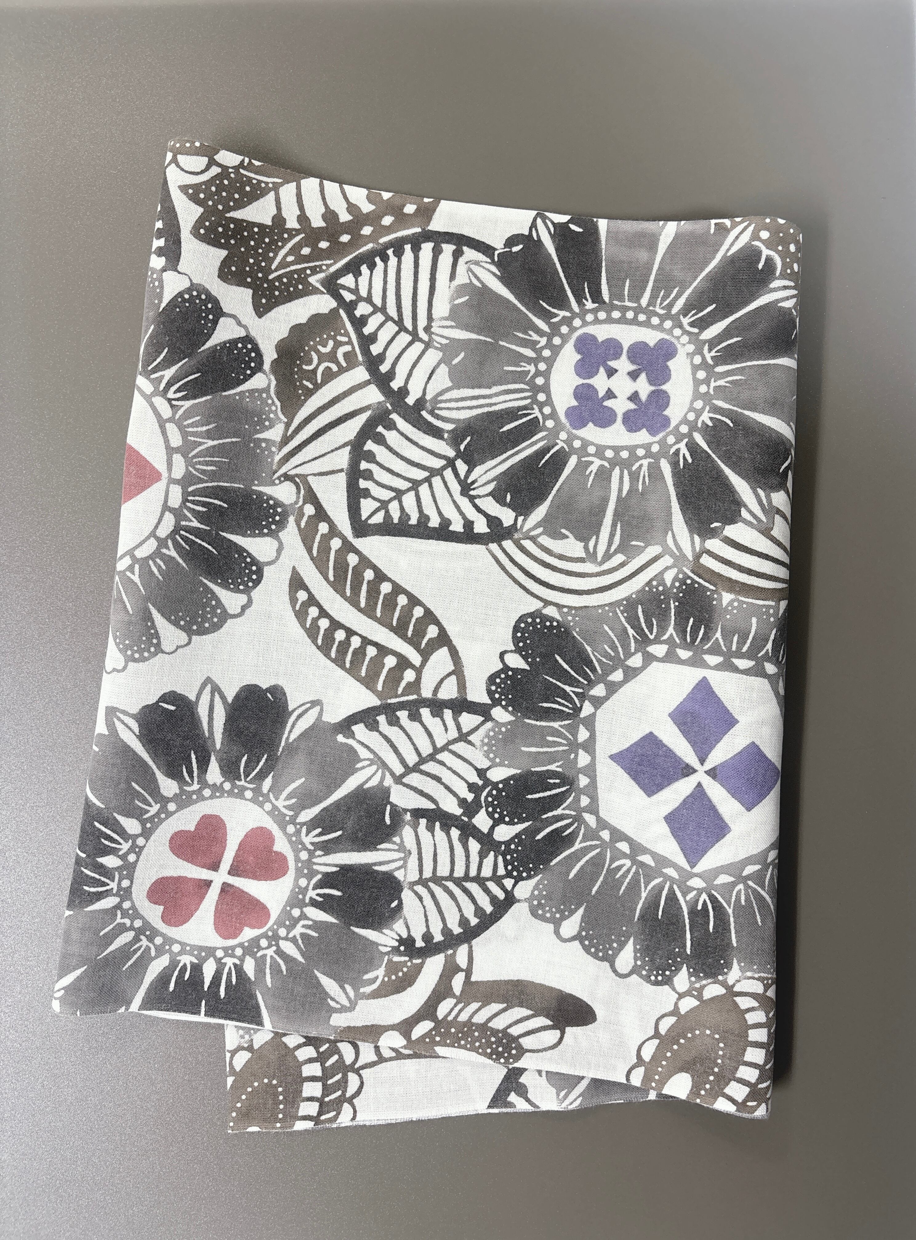 手挿し江戸紅型染めで丁寧に仕上げられた、華やかな大きい花の柄が特徴の手拭いです!綿100%の素材を使用し、しなやかでやわらかな肌触りが心地よいアイテムです。シックな色合いが魅力で、使い込むほどにその風合いが増していくのが特長です。中心にはトランプの柄が施されており、さりげない遊び心を感じさせます。