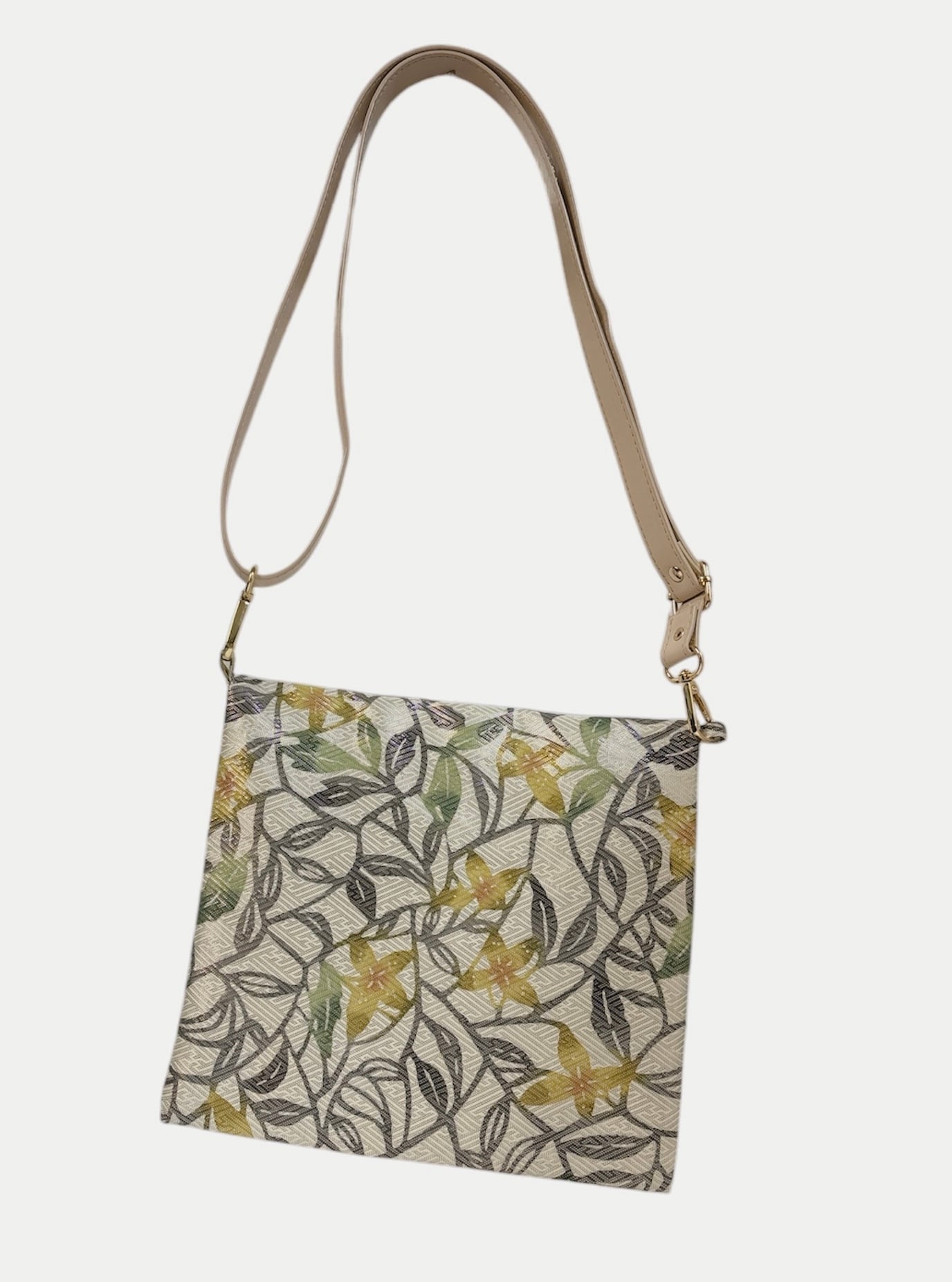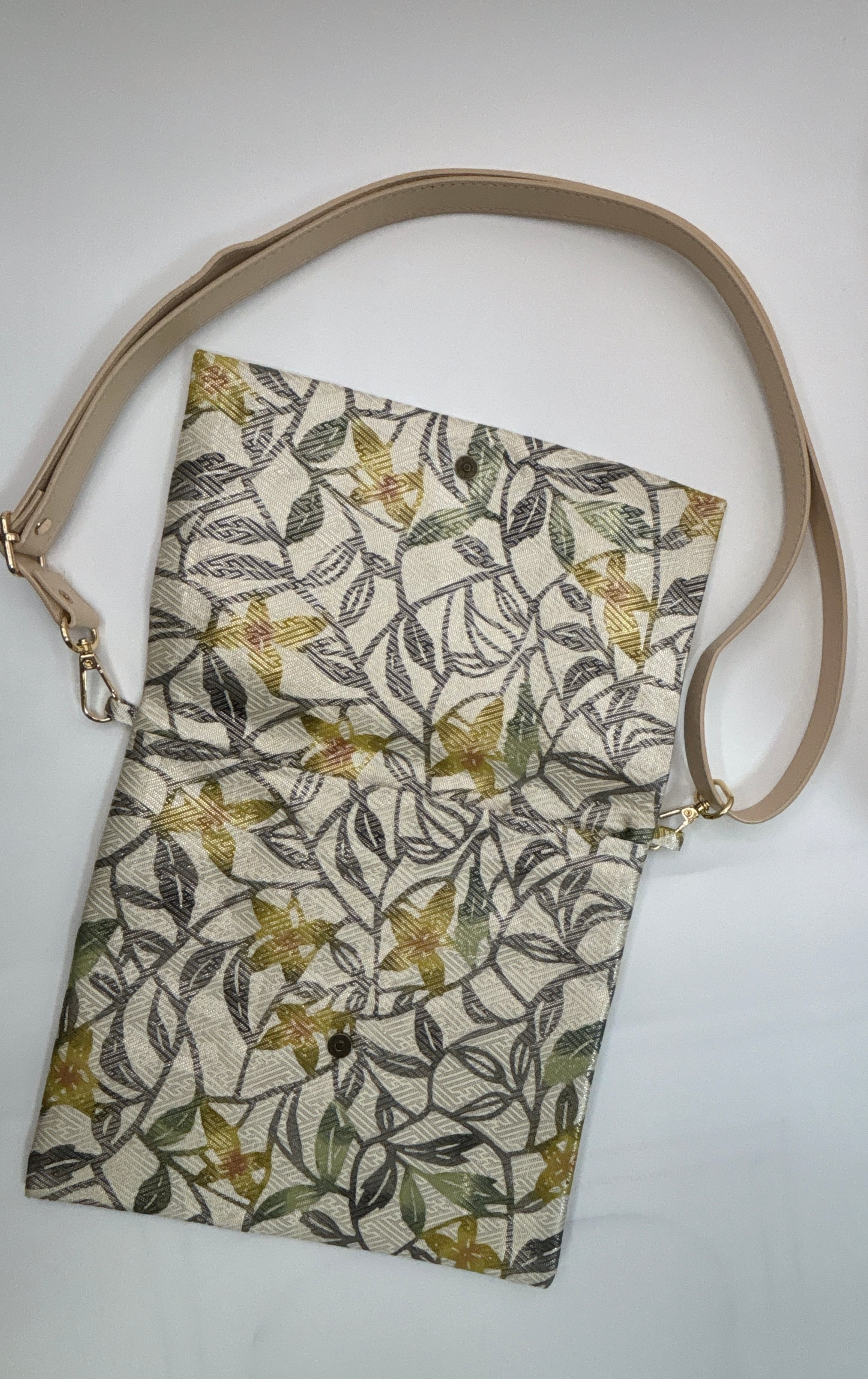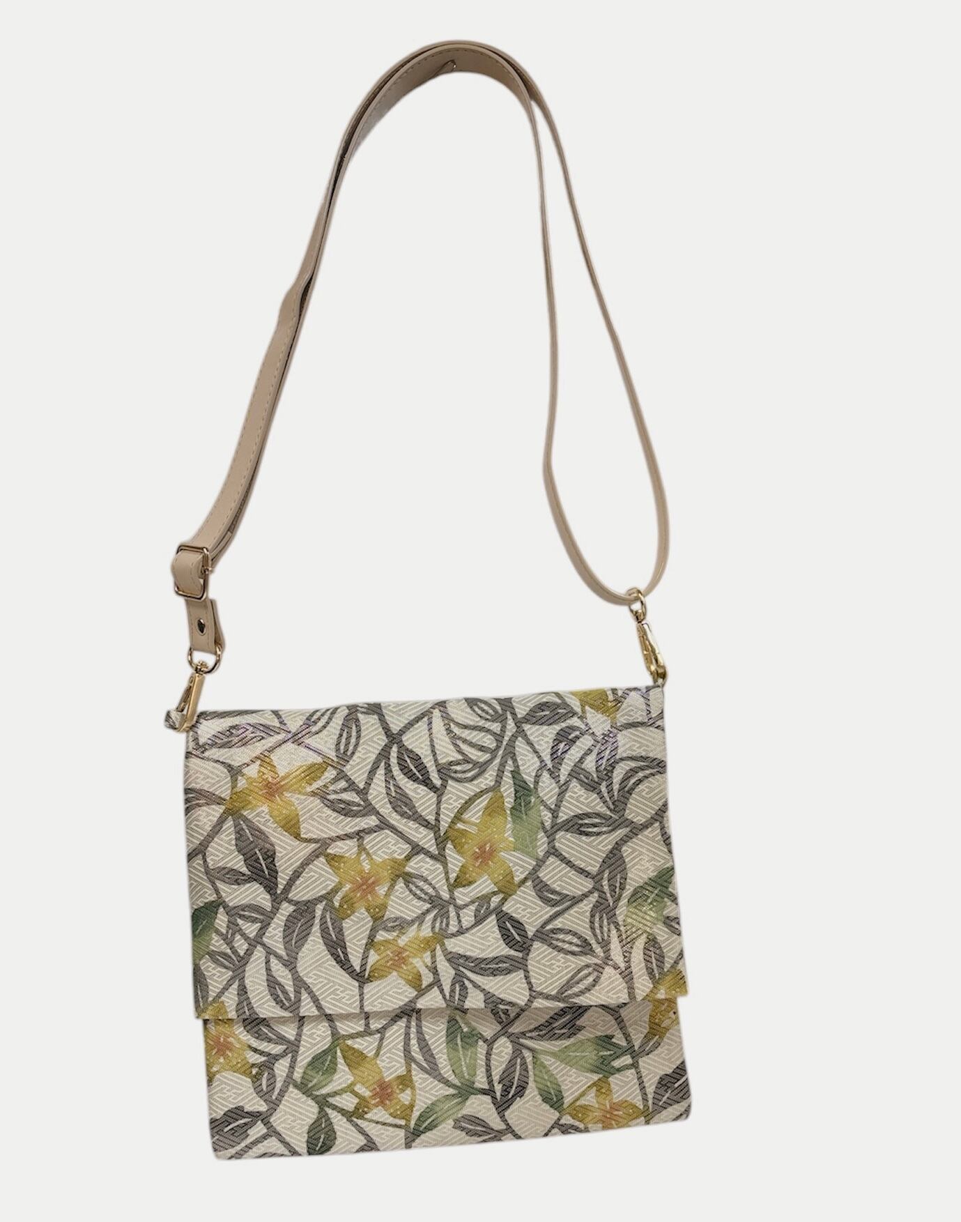 手挿し江戸紅型染めで丁寧に仕上げられた、華やかな花柄のサコッシュです!博多地銀糸入りの生地を贅沢に約120㎝使用しており、見た目にも触れ心地にも特別感が溢れています。調節可能なショルダーベルトが付いているため、自分のスタイルに合わせて使いやすさが抜群です。