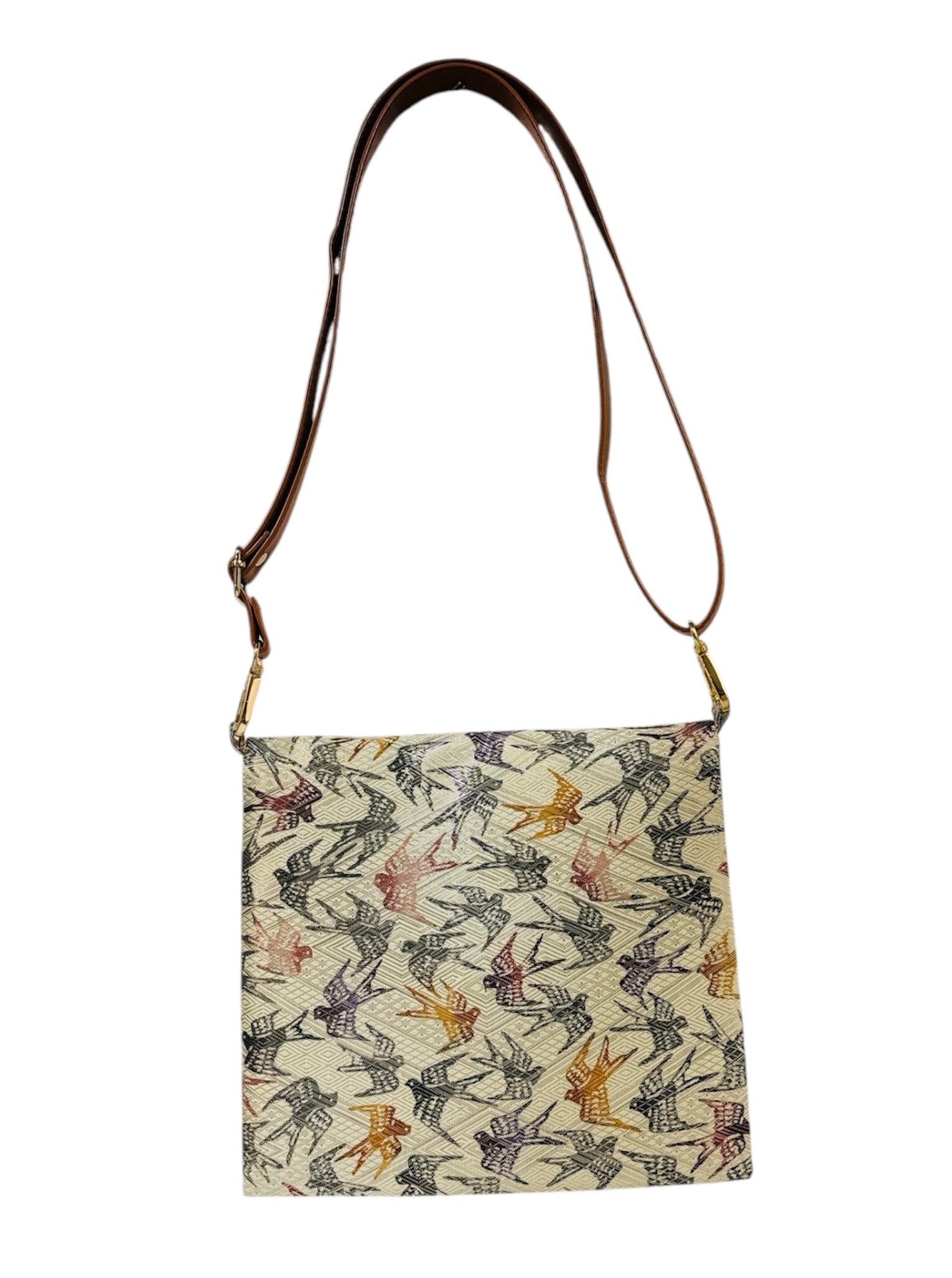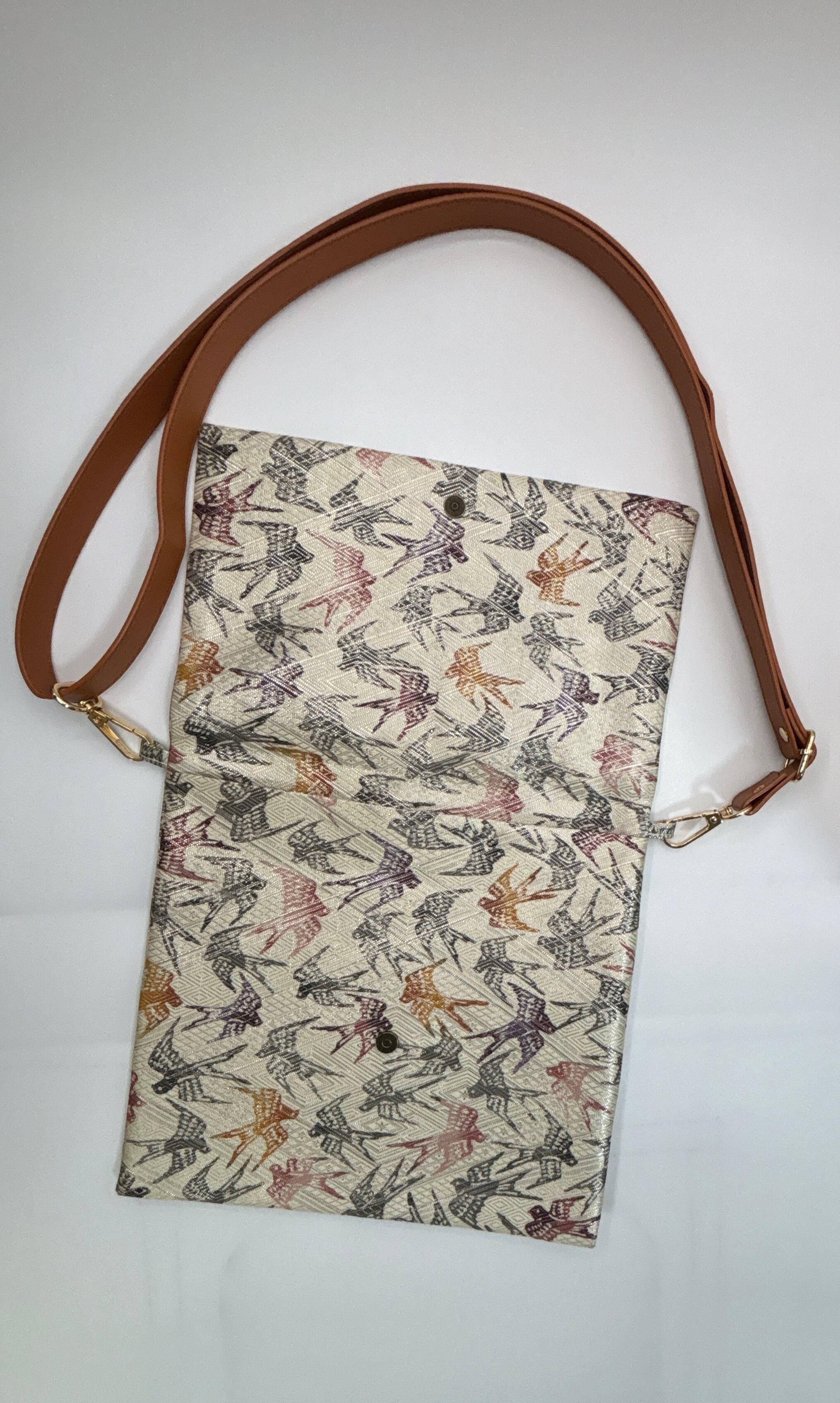 手挿し江戸紅型染めで丁寧に仕上げられた、色鮮やかな小鳥柄のショルダーバッグです!銀糸入りの博多地の生地を贅沢に約120㎝使用しており、見た目にも触れ心地にも特別感が溢れています。調節可能なショルダーベルトが付いているため、お好みに合わせて使いやすさが抜群です。