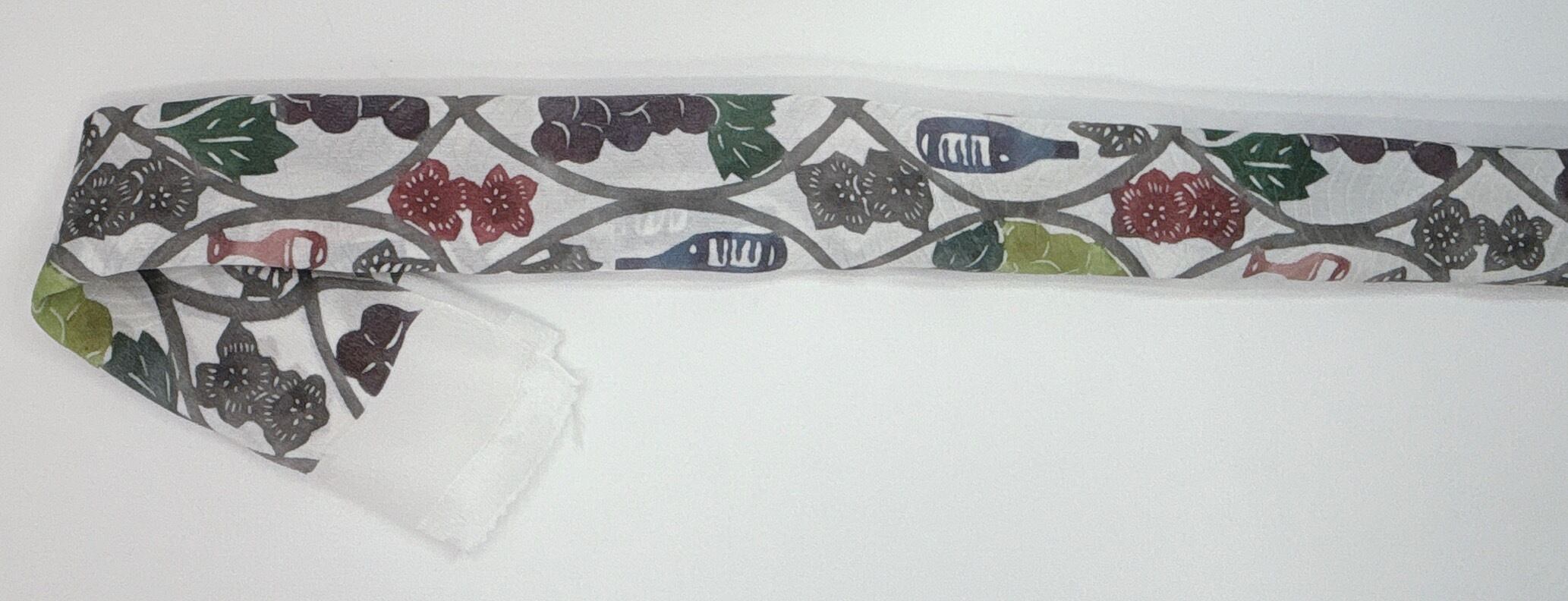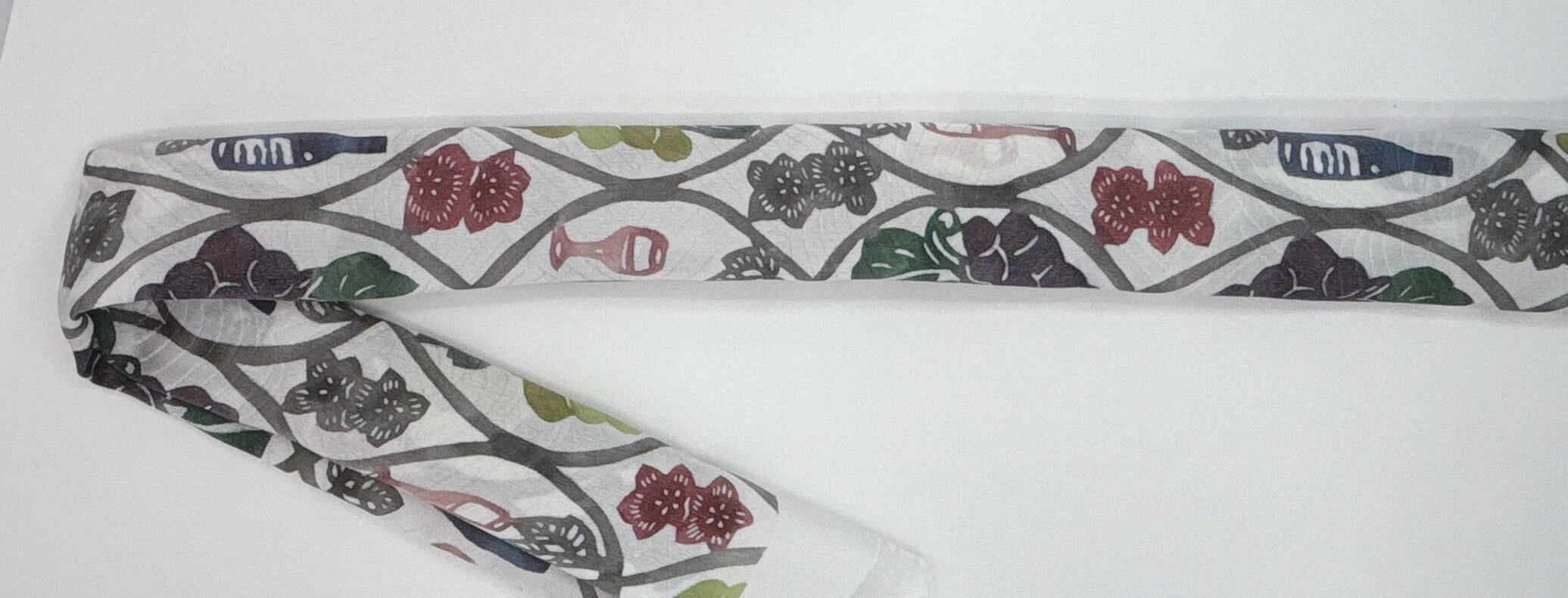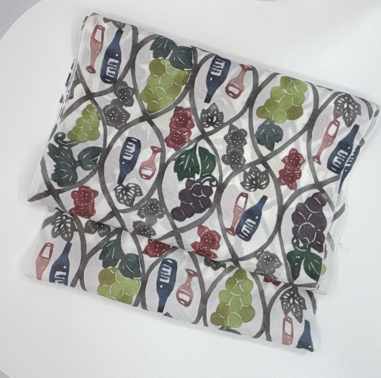 柔らかく優しい肌さわりの綸子を使用した、個性的な帯揚げです!手挿しの江戸紅型染めで施されたぶどうとワイン柄が、華やかさとお洒落な印象を与え、特別な日常を演出してくれます。軽やかに身にまとうことで、コーディネートにアクセントを加えることができます!