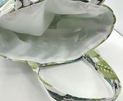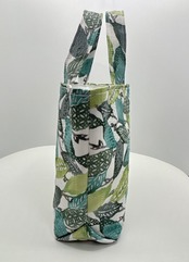 博多献上帯地を使用したこのバッグは、葉柄のフレッシュな配色が特徴で、持つだけで気分を明るくしてくれるアイテムです。