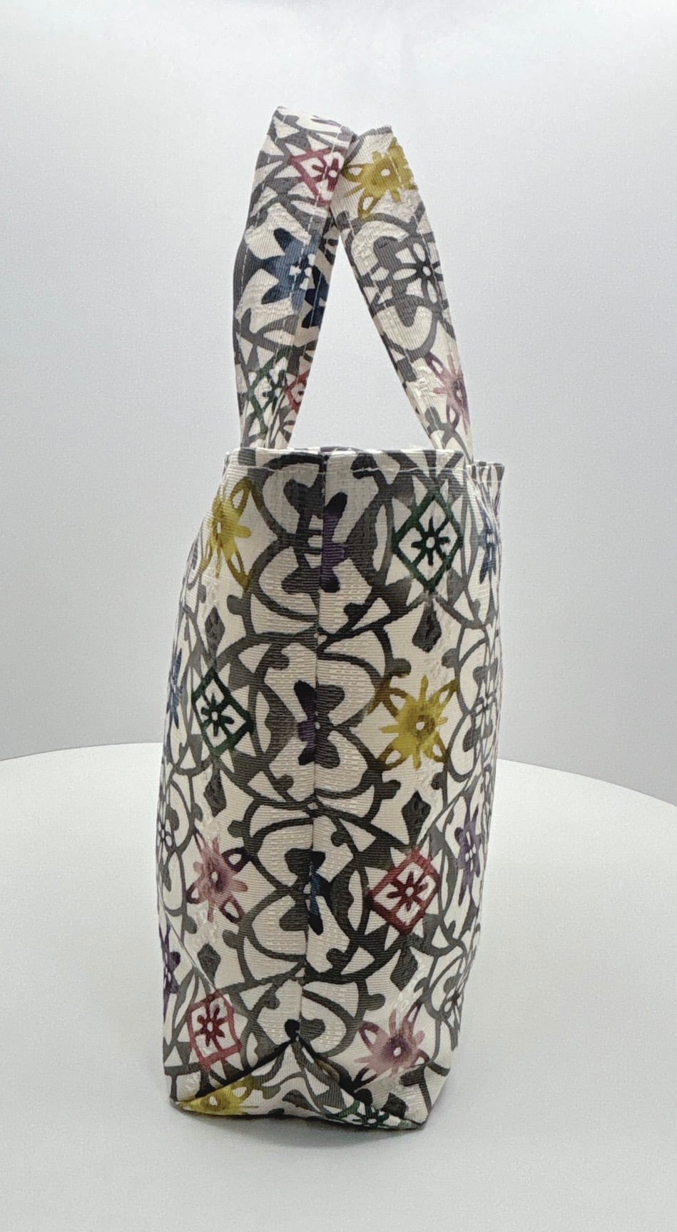 自立する形状は実用性が高く、しっかりとした作りながらも軽やかなデザインを楽しむことができます。マチがあることで、収納力も優れており、お出かけやお買い物、さらには特別な日のコーディネートにもぴったりです。この彩り豊かな手提げバッグで、あなたのスタイルにひときわ華やかさを加えてみませんか?