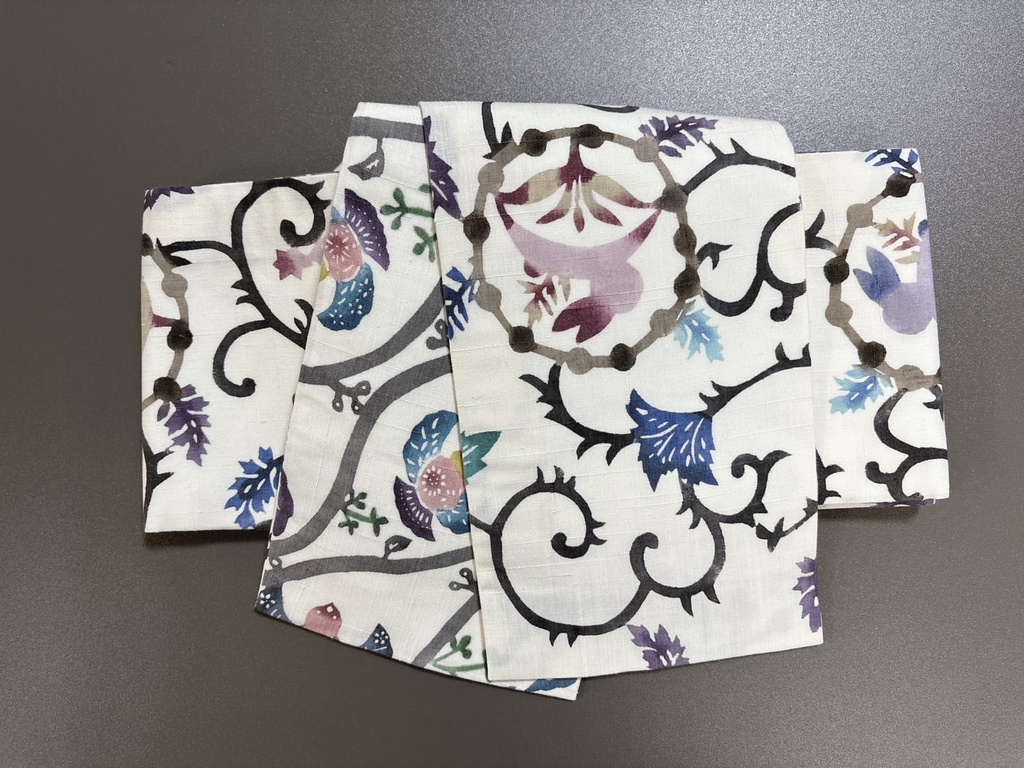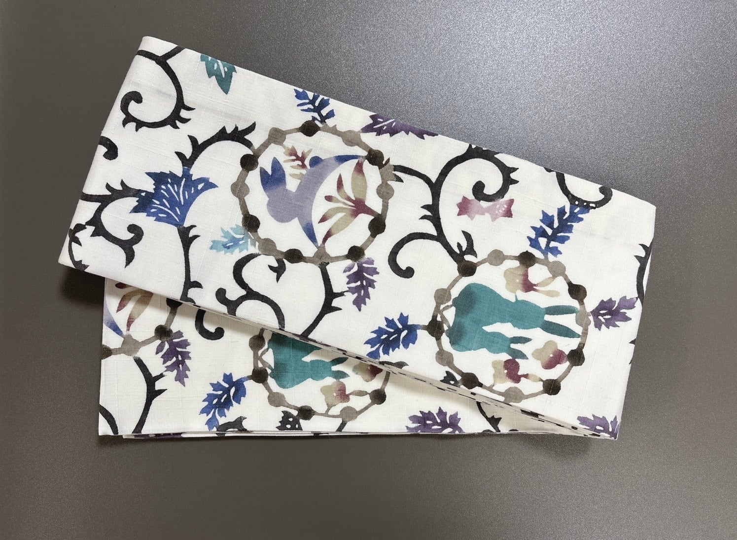 長さがたっぷりとあり、着物だけでなくカジュアルスタイルにも調和するため、日常のお出かけから特別なイベントまで幅広く活躍します。この半幅帯を使うことで、あなたのファッションに一層の個性と華やかさをプラスしてくれることでしょう。