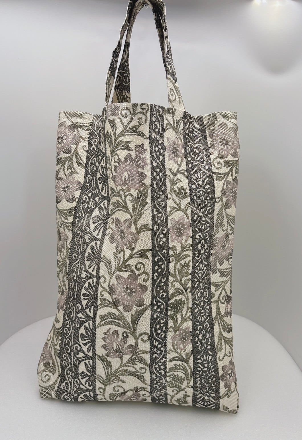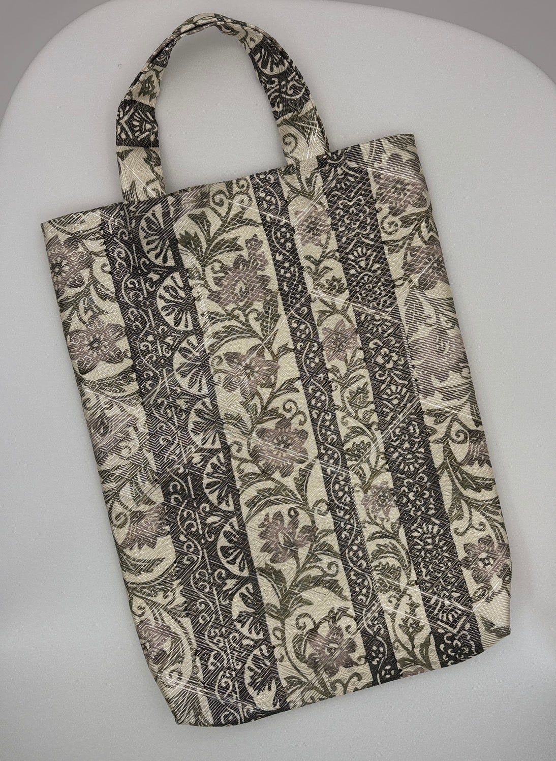 柔らかなくすみピンクとグレーの配色が魅力的な、銀糸入りの博多織を使用した手提げバッグが登場しました!