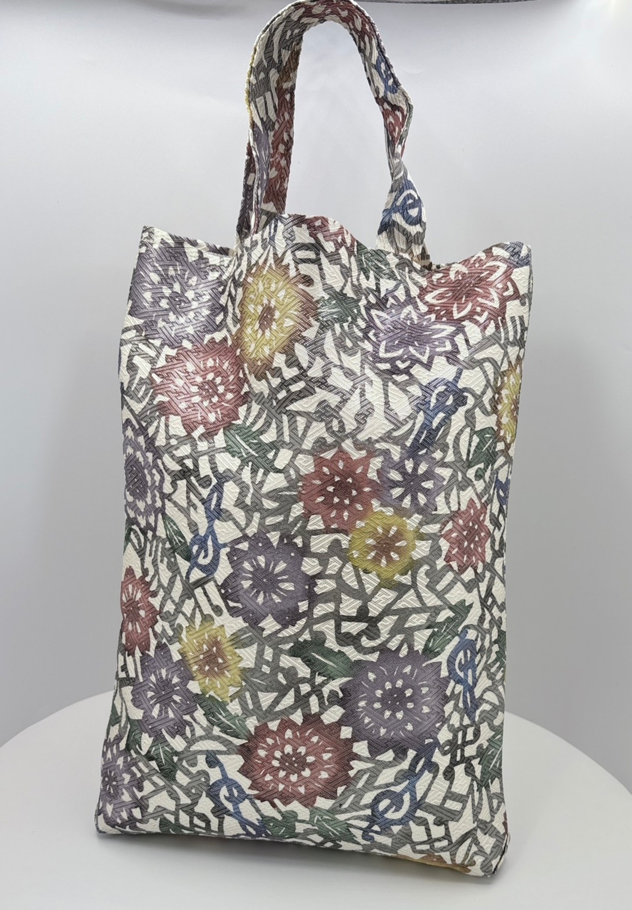 美しい花柄に音符が散りばめられた手提げバッグが新登場です!このバッグは、手挿しの江戸紅型染めを施し、銀糸入りの博多織りを使用した、華やかで個性的なデザインが特徴です。豊富な色使いで、どんなシーンでも引き立ちます。お出かけやお買い物にぴったりのアイテムとして、ぜひご活用ください。