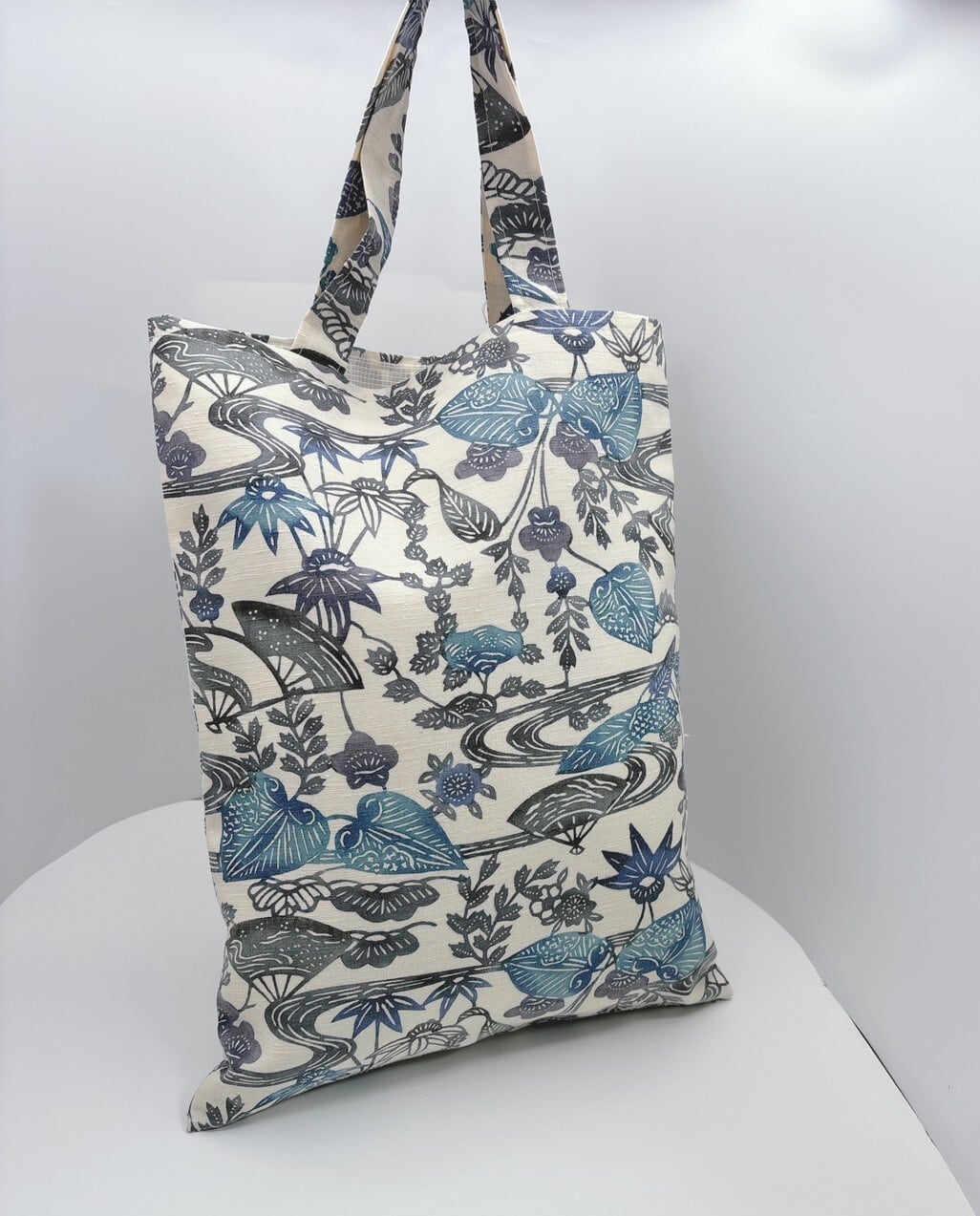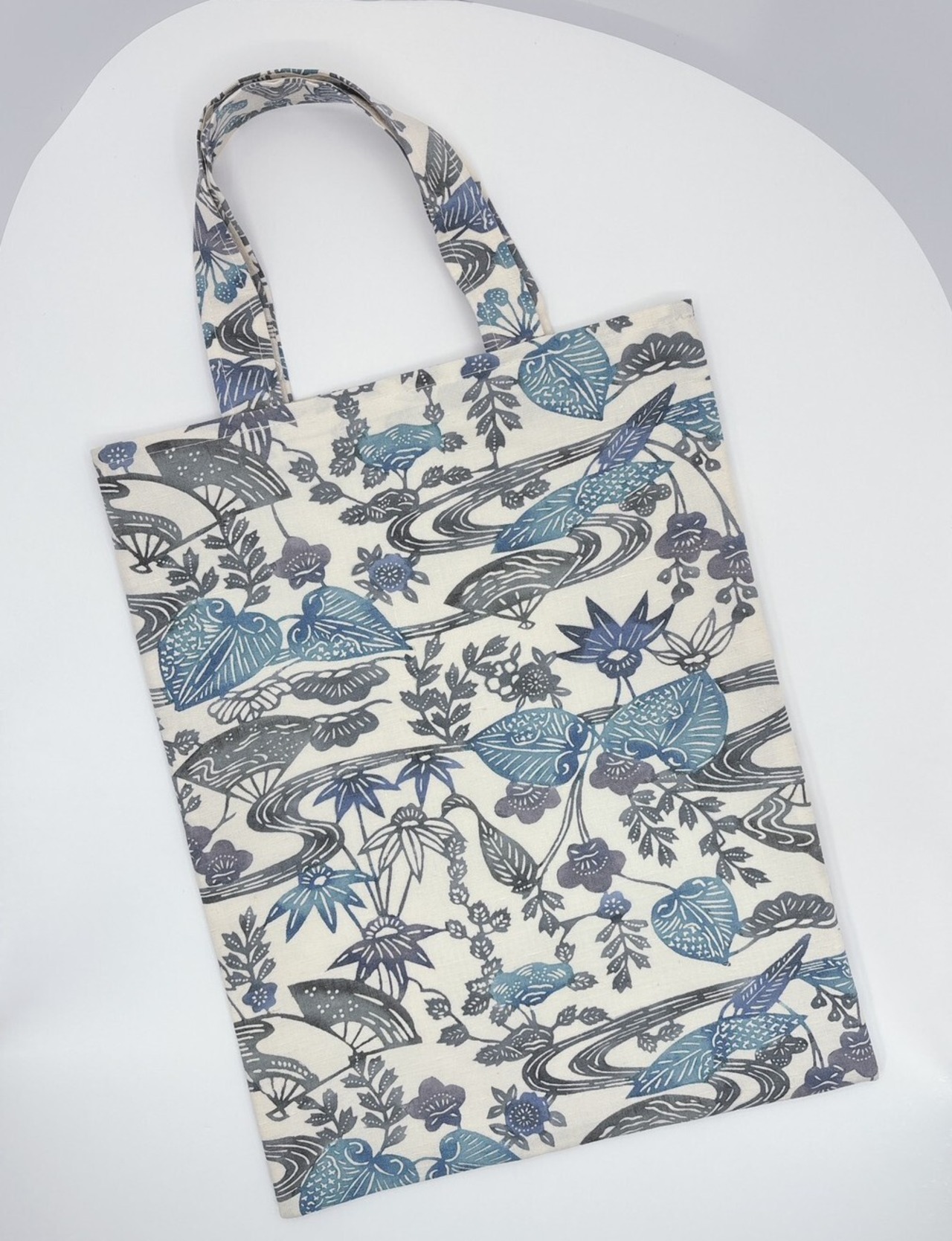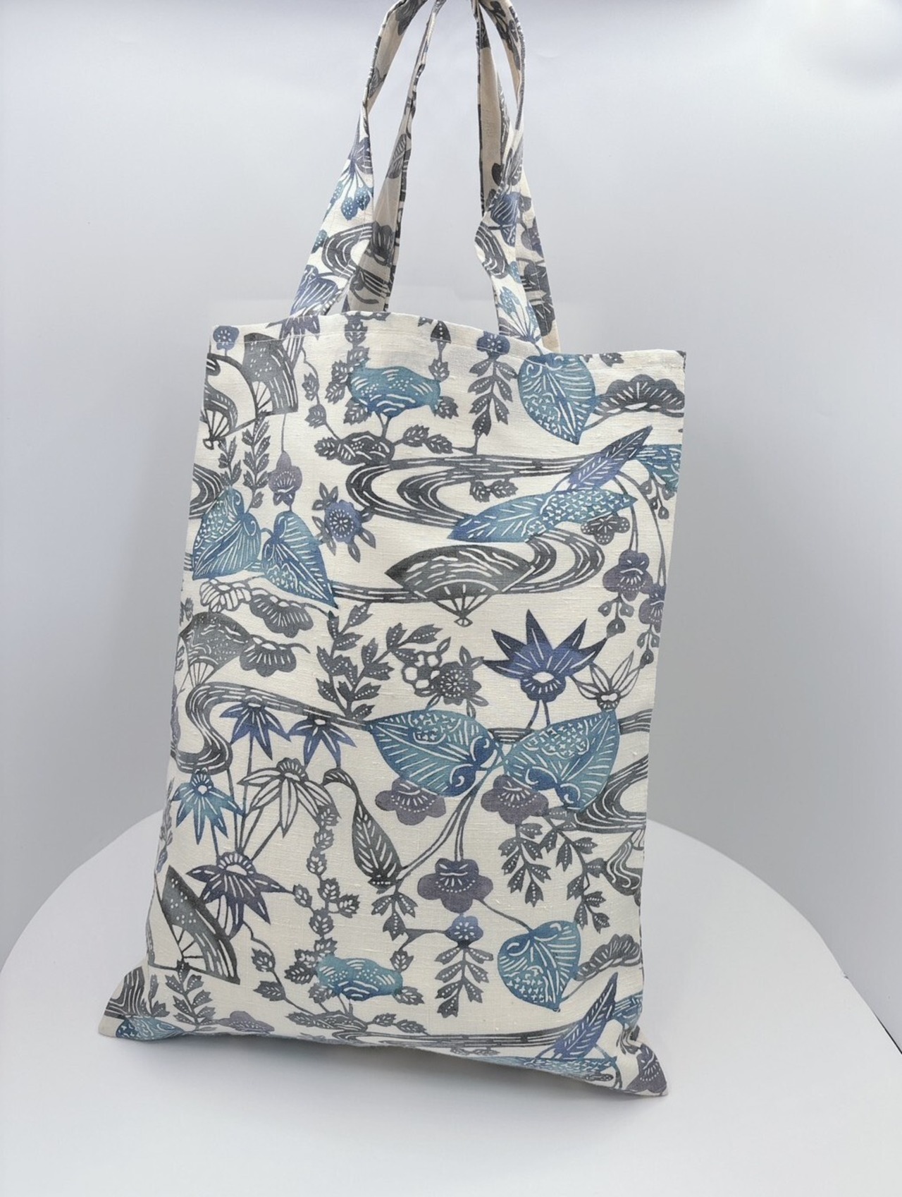 涼しげな配色と葵の柄が魅力的な手提げバッグが新登場です!