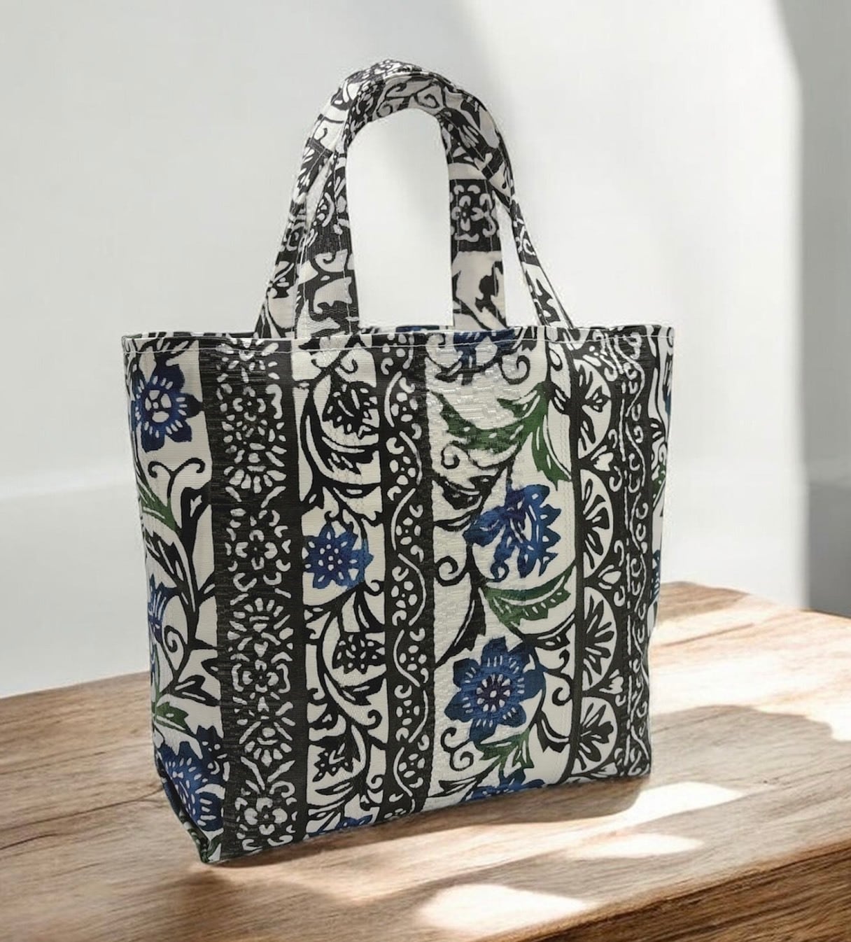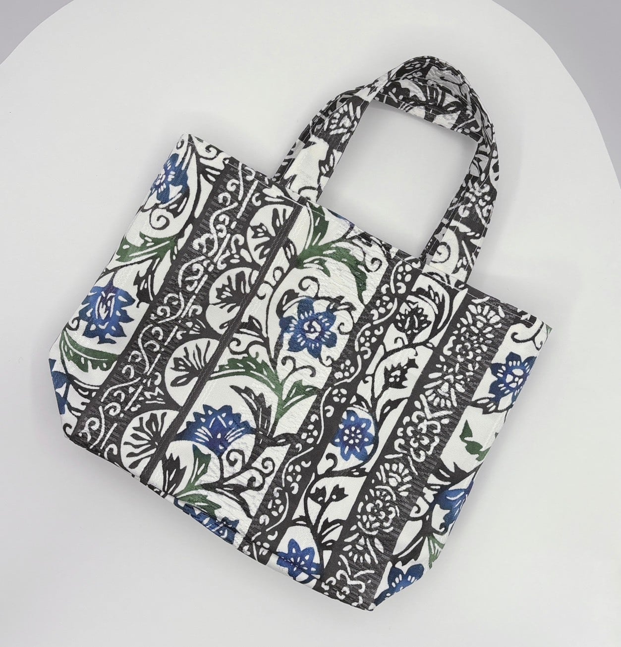 華やかな草花の縦柄が魅力的な手提げバッグが新登場です!手挿しの江戸紅型染めを施したこのバッグは、博多献上帯地を使用しており、しっかりとした生地感が自立するデザインを実現しています。小ぶりでかわいいサイズ感は、日常使いはもちろん、特別なシーンでも大活躍間違いなしです。
