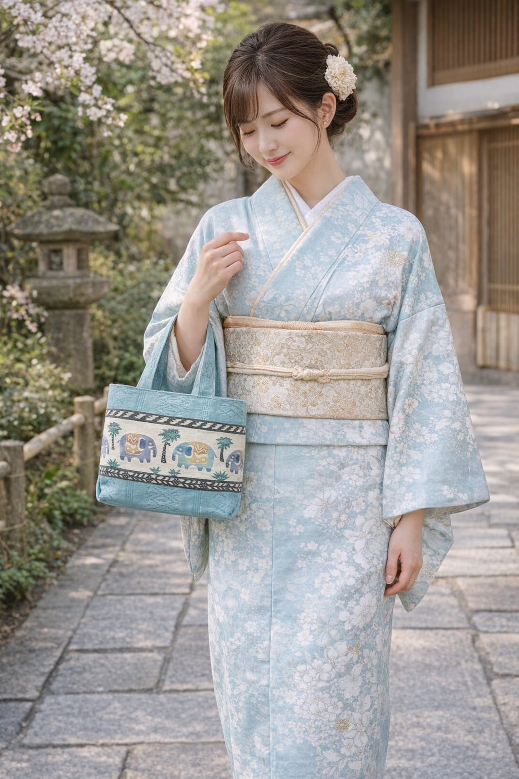 ぜひこの魅力的な手提げバッグを手に取って、博多織の美しさと江戸紅型染の深い風合いをご体感ください。職人の技が、あなたの日常に特別な彩りを添え、心豊かな時間をもたらしてくれることでしょう。