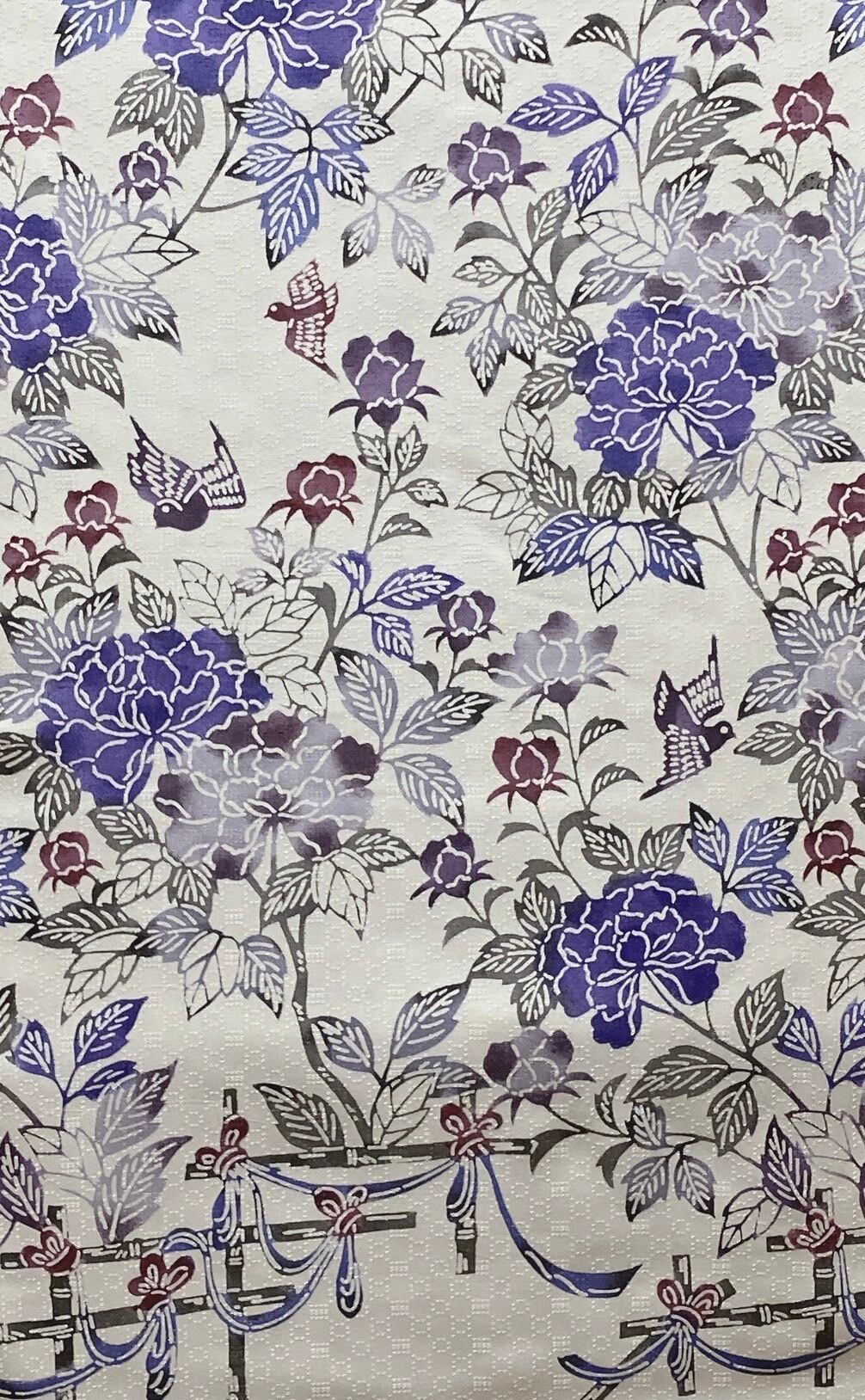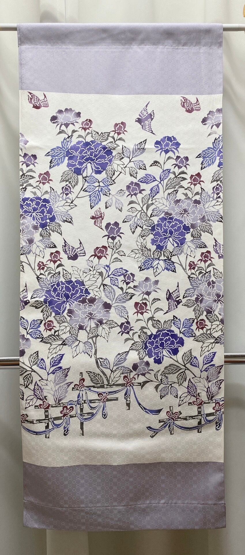 付け下げの優雅な花柄が目を引く、タペストリーの登場です。ムラサキ系の色合いが、お部屋を上品な雰囲気に変えてくれます。上下の色は鈍紫色に近い色です。