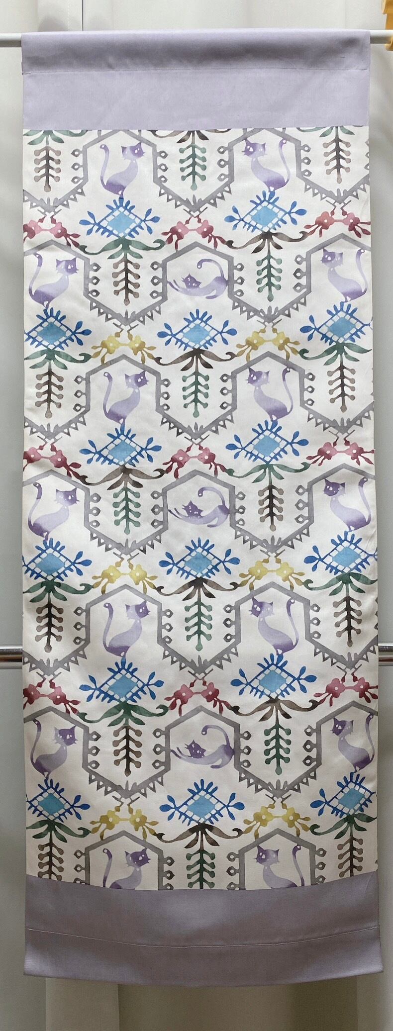 タペストリーのご紹介です。鮮やかな御すまし猫柄が目を引く、華やかで個性的なデザインです。色合いも豊富で、どんなお部屋にも合わせやすく使い勝手も抜群です。