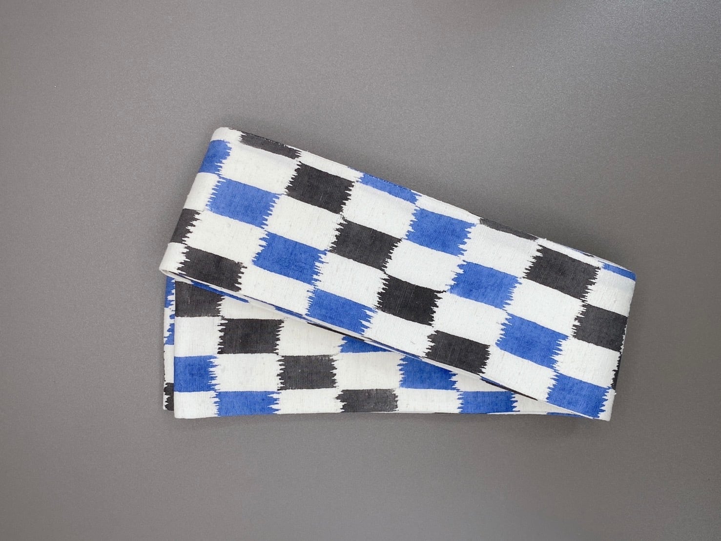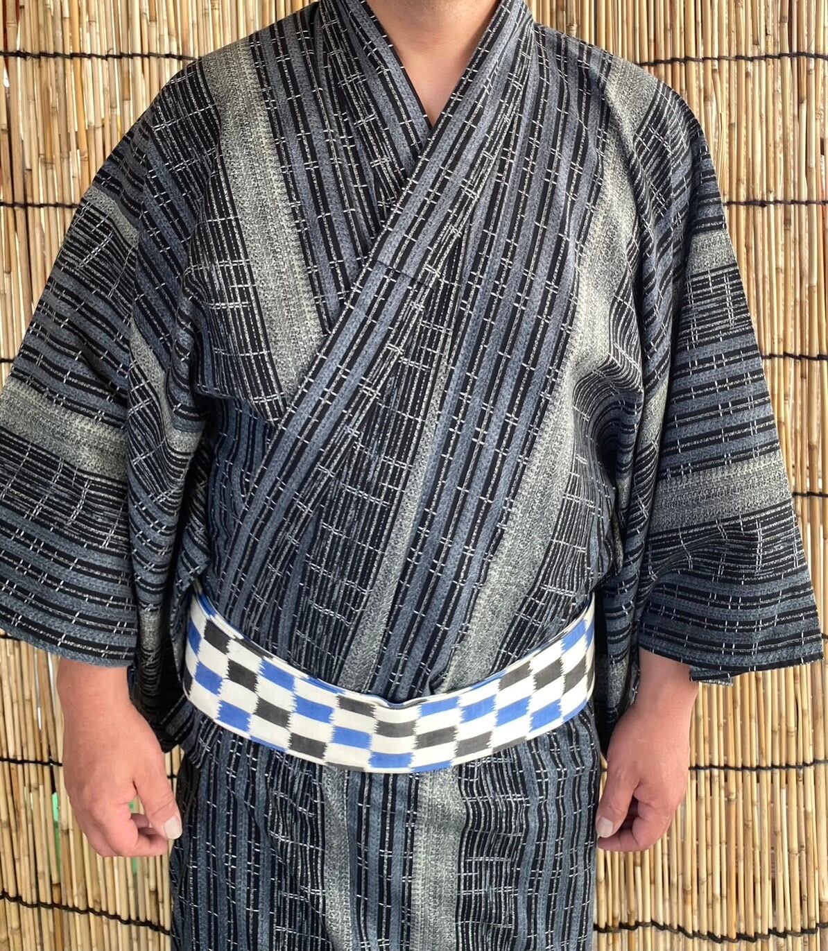 手挿し江戸紅型染めで仕立てられた、シックな色合いが美しい角帯。独特な変わり市松柄が上品で、着物のアクセントとして活躍すること間違いなしです。青と黒の二色展開で、様々な着物に合わせやすく、おしゃれなコーディネートが楽しめます。