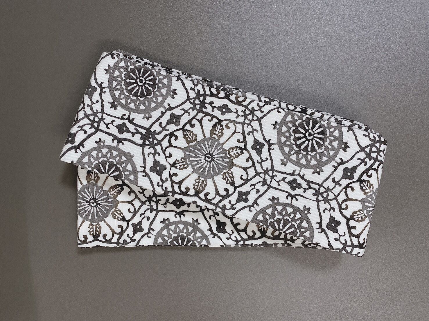 手挿し江戸紅型染めで織り上げられた角帯です。幅広の10㎝で、更紗調の柄が上品な装いを演出します。グレーと茶を主体とした配色が洗練された雰囲気を醸し出しています。和装のアクセントとしてはもちろん、ファッションアイテムとしてもおしゃれな一本です。