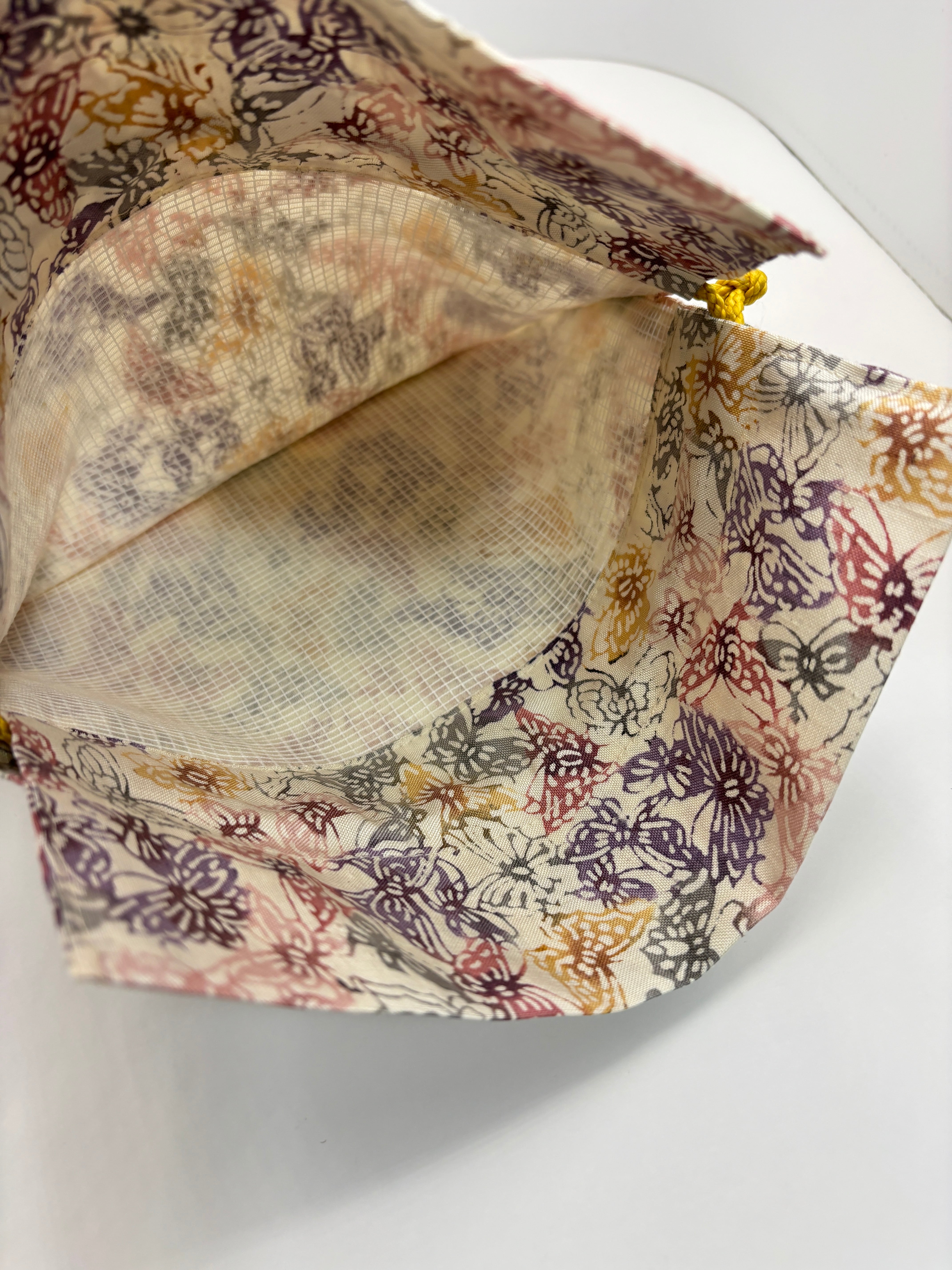 伝統の染め技術が感じられるこの巾着は、蝶々柄があなたの生活に華やかさをもたらし、心温まるひとときを演出してくれることでしょう。
