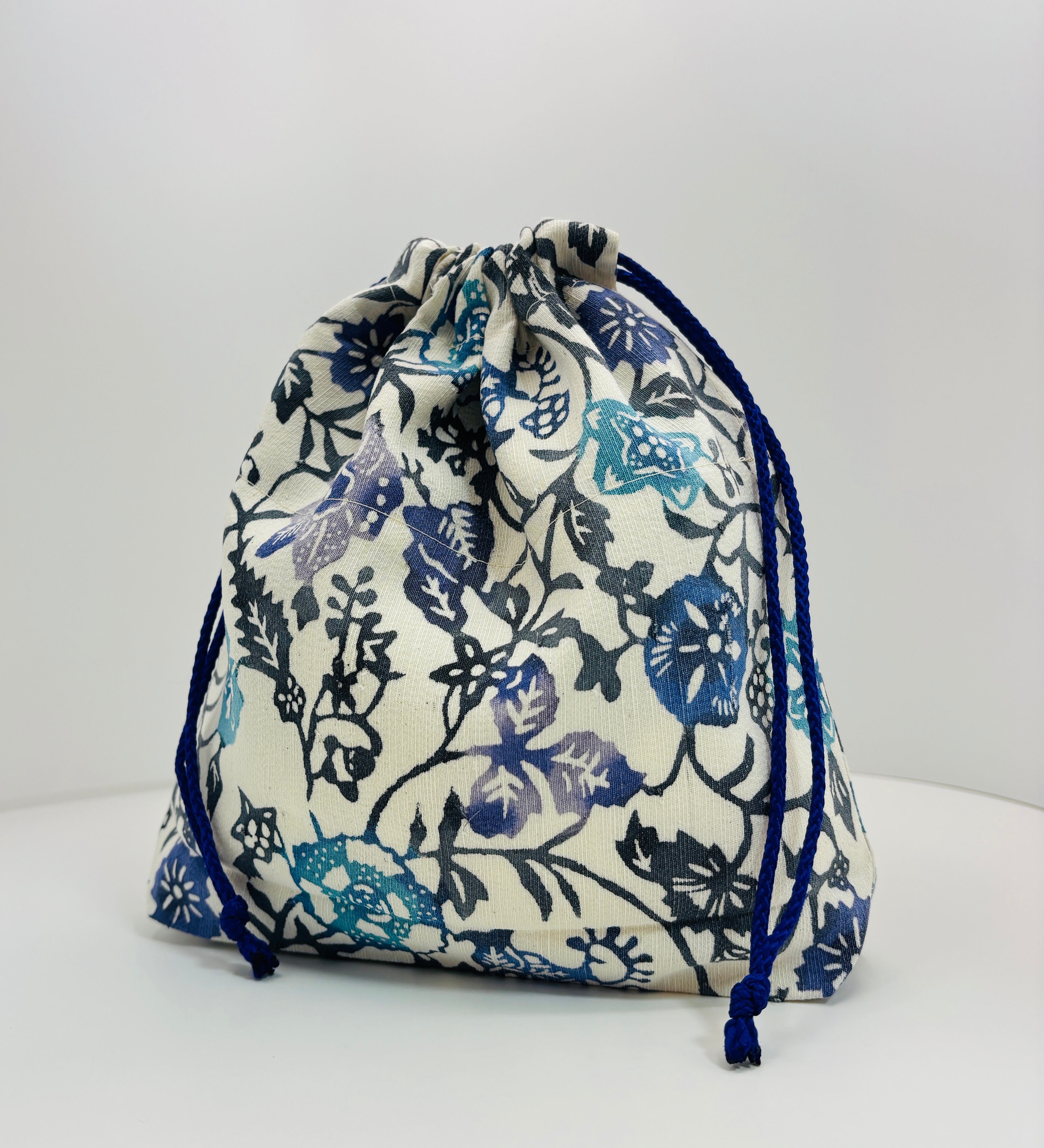 伝統的な染め技術が施されたこの巾着は、藍系配色のすっきりしたデザインが生活に華やかさをもたらし、心温まるひとときを演出します。あなたの生活に新たな発見を届け、素敵な生活を楽しむお手伝いをいたします。